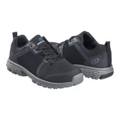 The Nautilus Zephyr brings unmatched style to athletic safety shoes with their all black, athletic design! The Zephyr comes equipped with alloy safety toe caps and a durable leather upper. Additionally, the Zephyr features removable static dissipative (SD10) insoles with built-in arch support, and slip-resistant heels which make them ideal for work on the factory floor.